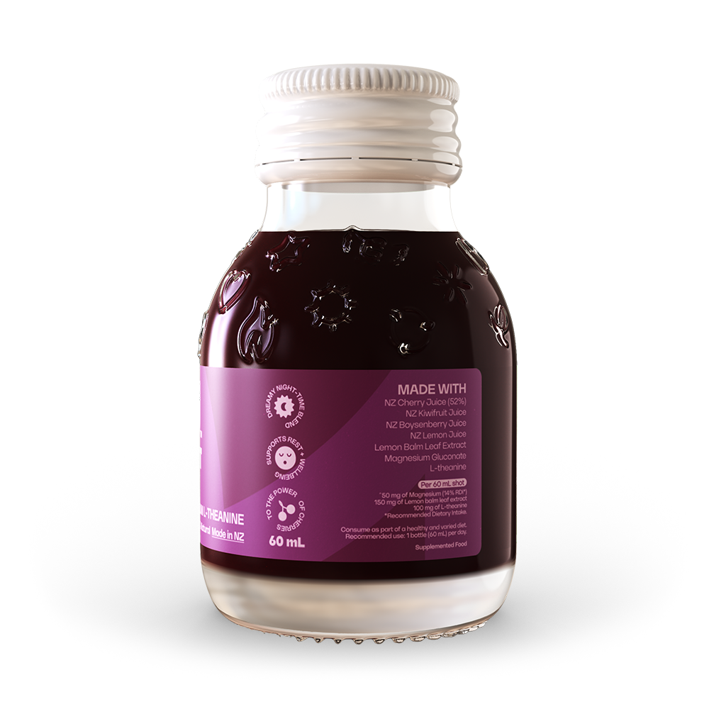 Good Night combines New Zealand cherry, kiwifruit and lemon with lemon balm, magnesium and L-theanine, carefully selected to support relaxation and restful sleep.